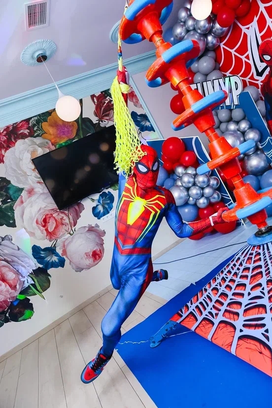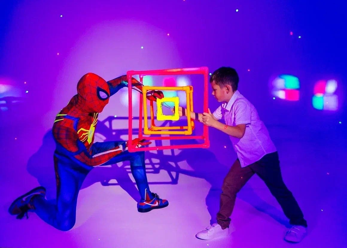 Погрузитесь в захватывающий мир Человека-паука с нашим акробатическим неоновым шоу! Один артист и ассистент представят 30 минут невероятных трюков на уникальной конструкции, дополненных лазерными эффектами и дым-машиной. Вас ждут арканы из светящиеся мячей, левитирующие паутины, вращающийся 3D куб, бумажная паутина и интерактивные развлечения: катание на карусели, обучение жонглированию и уникальная пиньята-кокон наполненная конфетами и светящимся серпантином для именинника!